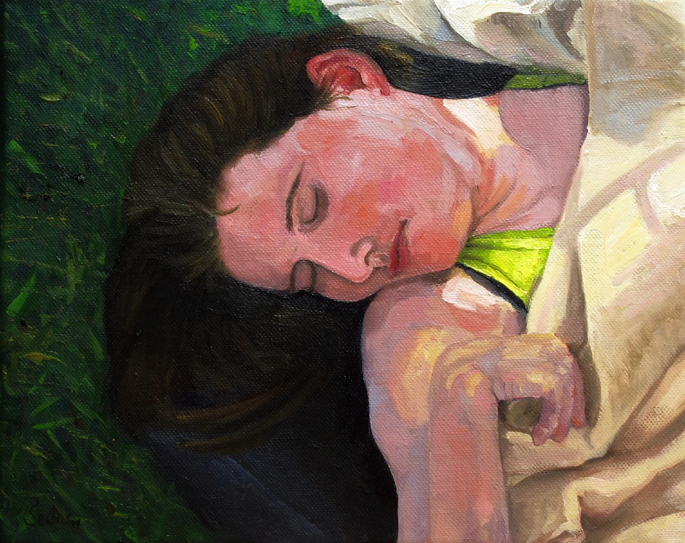 My wife Geke taking a well-deserved midnoon nap in the sunny south of France... Painting , 2015Art Series - Contemporary Portraits